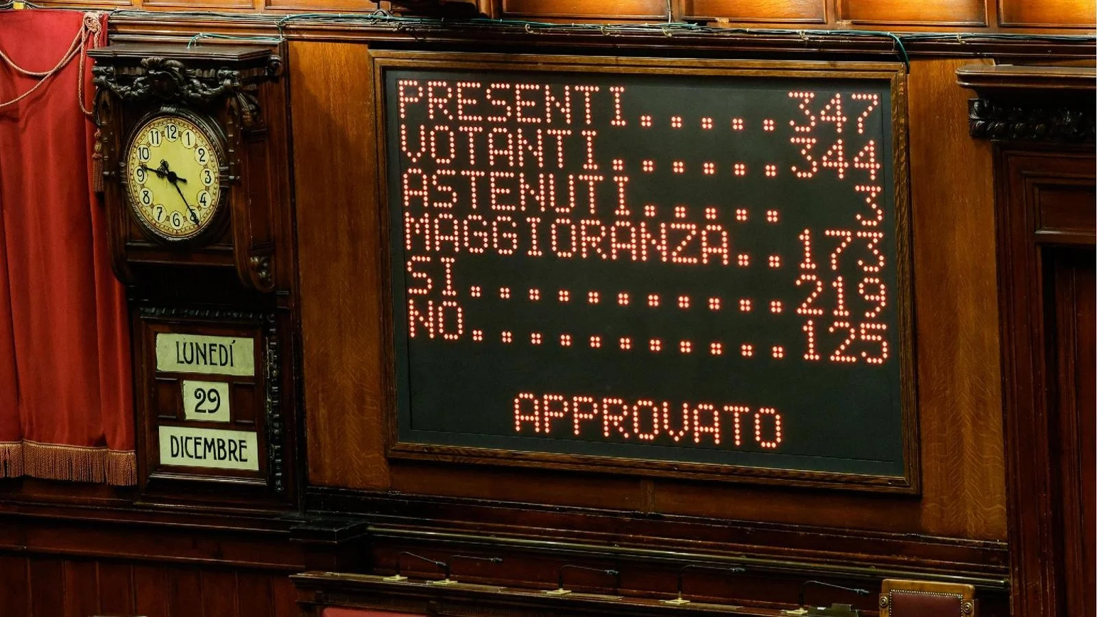 A Assembleia confirmou a confiança solicitada pelo governo sobre a manobra: a votação nominal indicou 219 votos a favor e 125 contrários. O governo, que pediu a confiança em plenário por meio do ministro para as Relações com o Parlamento Luca Ciriani, terá a chamada nominal dos deputados amanhã à noite e o voto final do texto aprovado pelo Senado deverá ocorrer na manhã de terça-feira.