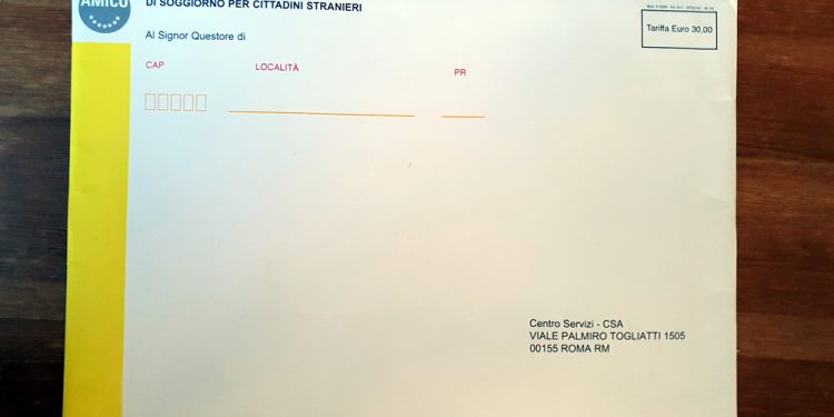 Dirija-se a uma agência dos Correios na Itália, conhecida como Poste Italiane, que ofereça o serviço do “Sportello Amico” (Guichê Amigo). Lá, solicite um Kit Giallo (Kit Amarelo), que é um envelope contendo formulários necessários para a solicitação do Permesso di Soggiorno. O kit incluirá: