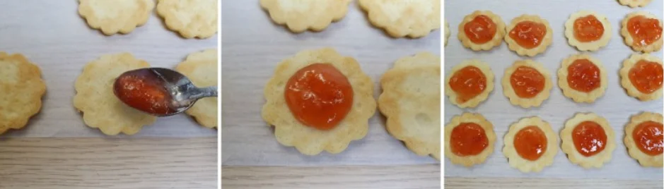 Montagem: pegue um disco inteiro (sem furo) e coloque no centro cerca de 2 g de geleia.