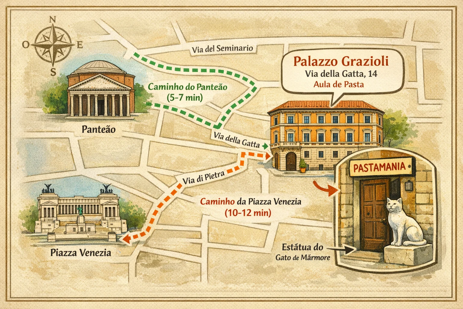 Se você ama gastronomia, Roma tem um segredo que vai conquistar seu paladar: uma experiência de pasta fresca que combina tradição, criatividade e muita diversão. Escondida no coração da Cidade Eterna, a poucos passos do Panteão e da Piazza Venezia, dentro de um palácio histórico, espera por você a oportunidade de mergulhar na verdadeira arte da cozinha italiana.