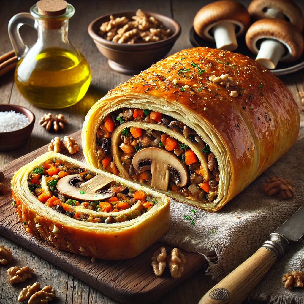 1. Rocambole de Nozes e Cogumelos