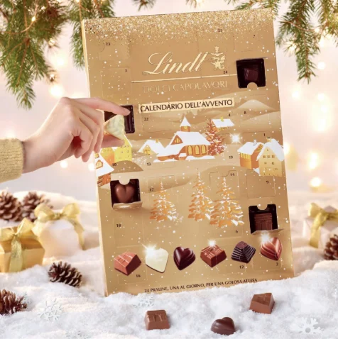 Lindt: Um dos chocolates suíços mais apreciados na Itália, com calendários recheados de chocolates premium.
