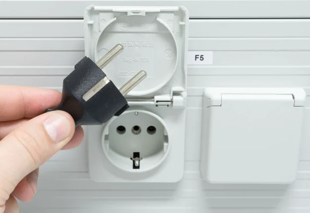 As tomadas aqui são diferentes e há mais de um tipo. O modelo padrão é o de três pinos finos, mas também há variações com dois pinos e entradas Schuko (as redondas, comuns em aparelhos maiores).