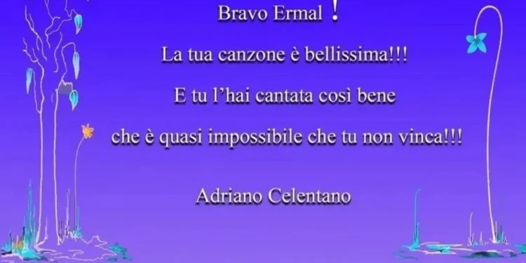 Por Chiara Lombardi — Em mais um gesto que mistura autoridade artística e afeto público, Adriano Celentano usou sua página no Instagram para declarar apoio a Ermal Meta, concorrente do Festival de Sanremo com a música Stella stellina. O icônico Molleggiato comentou: «Bravo Ermal! La tua canzone è bellissima! E tu l’hai cantata così bene che è quasi impossibile che tu non vinca», mensagem que rapidamente somou milhares de curtidas e foi repostada pelo próprio artista baresiado.