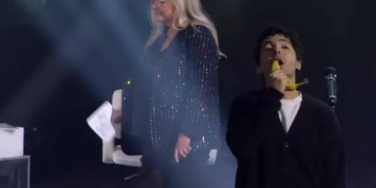 Seguindo a tradição que transforma o dia pós-Ariston num pequeno reencontro entre artistas e público, as apresentações em estúdio muitas vezes acontecem em playback por motivos técnicos e de produção. Há quem tente mascarar a artimanha com sinais sutis de canto ao vivo; Fulminacci preferiu a rota do humor e do gesto simbólico. Empunhando a banana enquanto soavam os acordes de Stupida sfortuna, ele deixou claro que aquilo era uma performance consciente do estatuto do espetáculo televisivo.