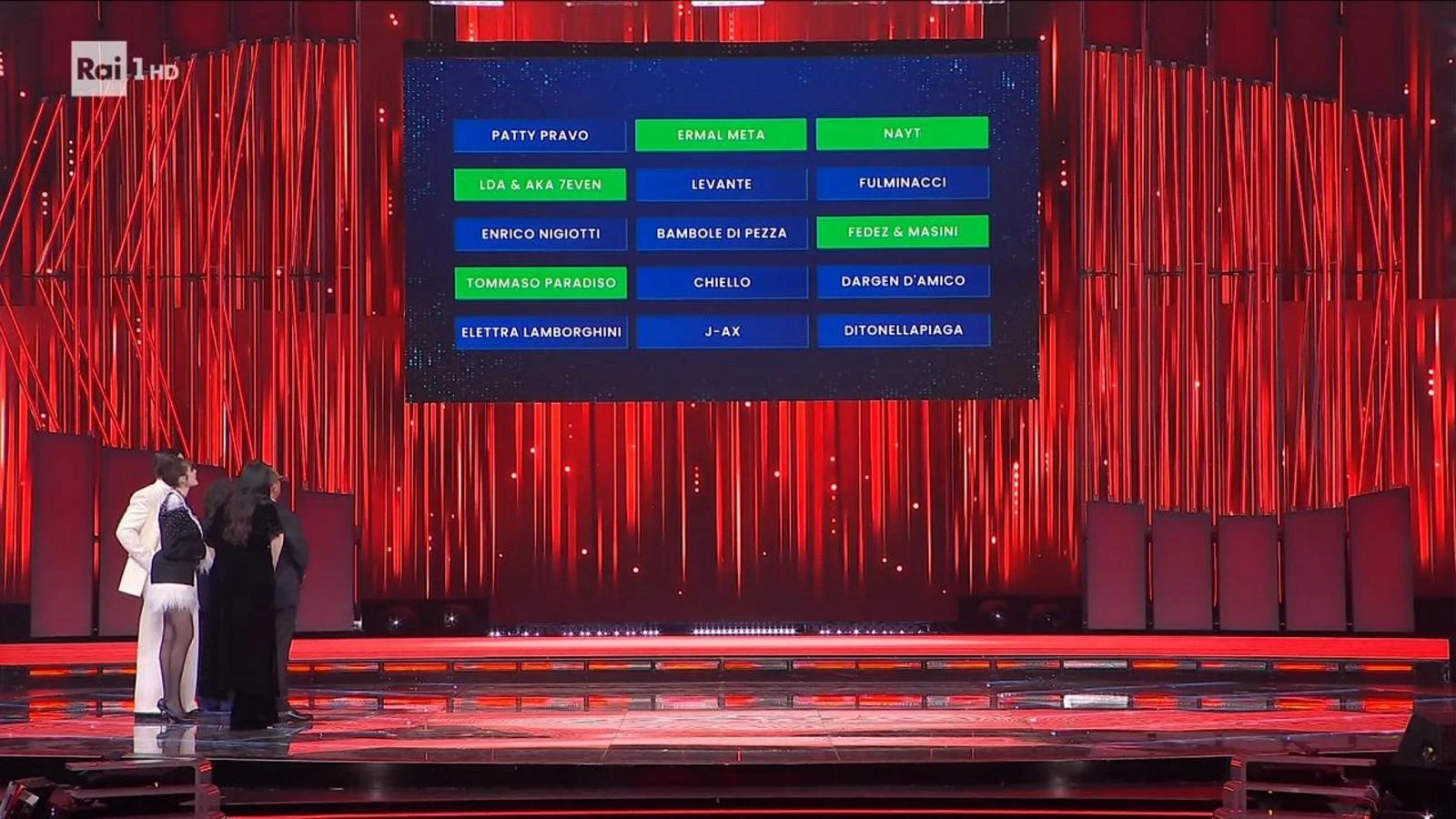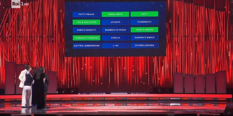 Também figuraram entre os mais votados Fedez e Masini, com “Male necessario”, música que trata de vulnerabilidade e da coragem de enfrentar o silêncio que é, paradoxalmente, um ruído. Vale lembrar que Fedez e Masini já tinham entrado na Top 5 na primeira noite.