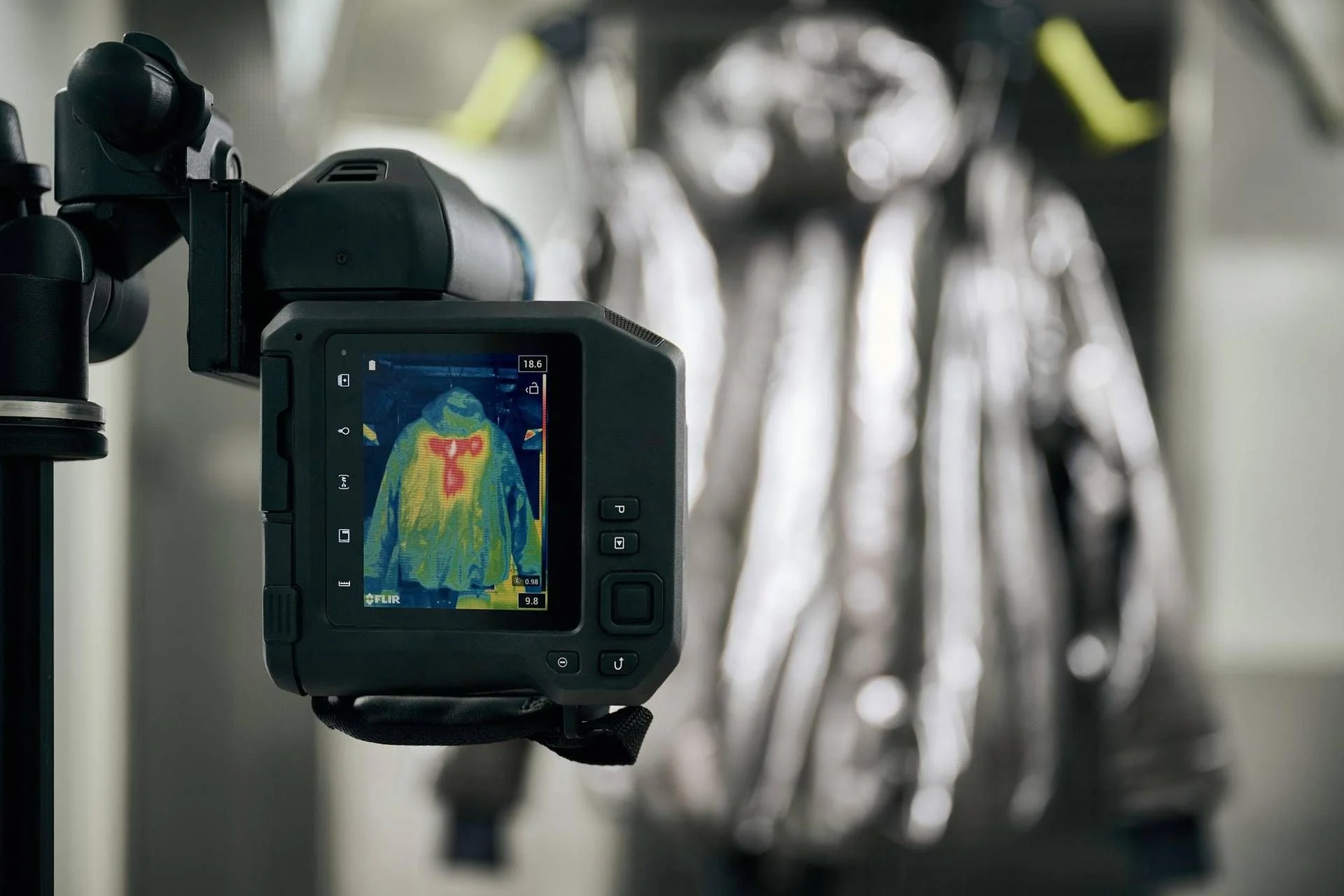 No núcleo da inovação estão os pads térmicos inteligentes Clim8, elementos ultrafinos integrados estrategicamente em jaquetas e calças técnicas, alinhados aos principais grupos musculares. A arquitetura do sistema opera em camadas de inteligência: sensores, atuadores térmicos e algoritmos que equilibram conforto e desempenho em tempo real.