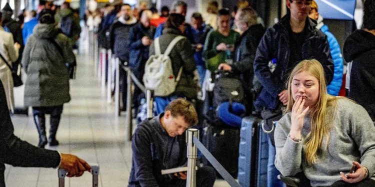 Nos Países Baixos, o epicentro do transtorno aéreo é o aeroporto de Schiphol em Amsterdã. Estima-se que aproximadamente 800 voos foram cancelados, em grande parte operados pela KLM, e mais de mil viajantes passaram a noite dentro do terminal — a primeira vez em que foram montadas camas campal (brandinas) para acomodar passageiros. Schiphol tinha na programação cerca de 1.100 voos para o dia, de modo que o número de cancelamentos ainda pode subir.