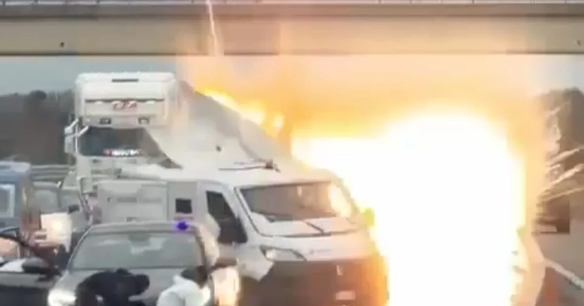 Relato de apuração: esta manhã, na superstrada Brindisi–Lecce, próximo ao entroncamento de Tuturano, um comando armado realizou um ataque coordenado contra um furgão portavalori. A ação, planejada e executada com tática de guerra, envolveu o incêndio deliberado de um caminhão para bloquear ambas as faixas e isolar a área. A coluna de fumaça negra pôde ser vista a quilômetros.