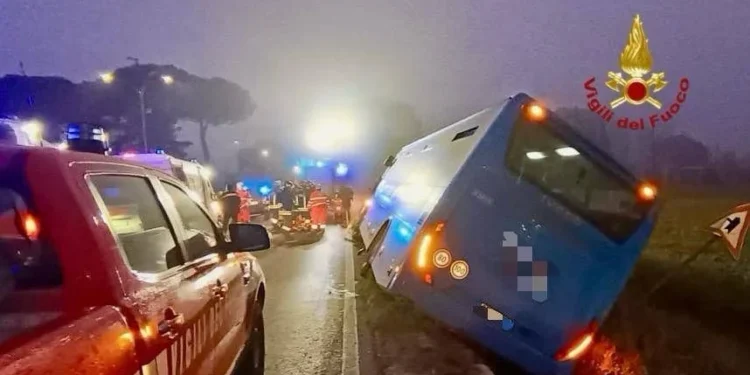 O impacto foi intenso e provocou a saída de pista do ônibus, que transportava oito passageiros e tombou sobre um dos flancos à margem da via. O cenário exigiu atuação imediata das equipes de socorro: o serviço de emergência médica 118 da ASL Toscana Sud Est foi acionado e deslocou ambulâncias para o local.