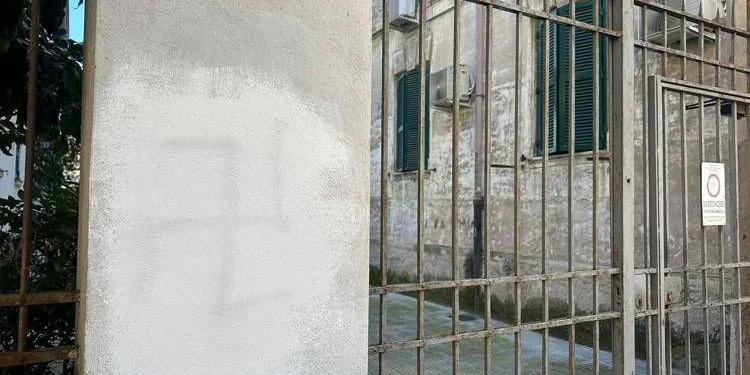 Relato apurado em campo e verificado por cruzamento de fontes: foi encontrada durante a madrugada uma svástica pintada na entrada do condomínio da via Bodoni, no rione Testaccio, local conhecido por ter servido de cenário do filme C’è ancora domani, dirigido por Paola Cortellesi. O símbolo foi removido nas primeiras horas após a identificação.
