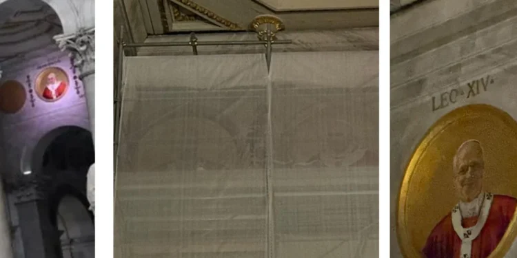 O retrato do Pontífice escolhido em 8 de maio já foi colocado na faixa acima dos arcos que dividem as naves, mas — conforme verificação da apuração in loco e cruzamento de fontes do correspondente — permanece apagado. A iluminação está programada para amanhã, durante os Vésperas pela solenidade da Conversão de São Paulo, presididos pelo Papa, na basílica às 17h30.
