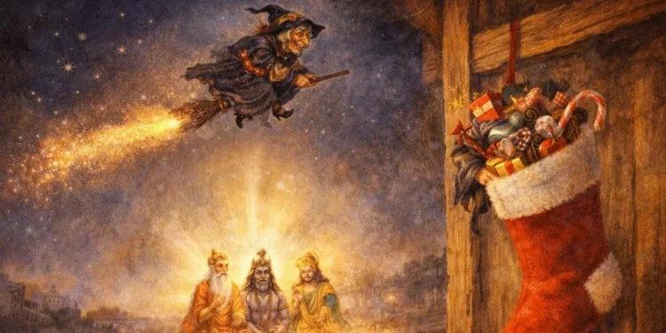 O que vemos, hoje, é o oposto: a neutralização dessa carga subversiva por meio da estética, do consumo ritualizado e da reciclagem festiva. O evento tornou-se atmosfera; a ruptura, ciclo; a novidade, tradição previsível. Nesse movimento, elementos folclóricos pré-cristãos — costumes, figuras e ritos locais — se sobrepuseram à narrativa cristã, criando camadas que nem sempre dialogam com o sentido original. A Epifania, por exemplo, foi sendo ressignificada em muitos contextos por imagens e práticas que priorizam a criança, o presente e a alegria imediata, deslocando o foco do acontecimento espiritual.