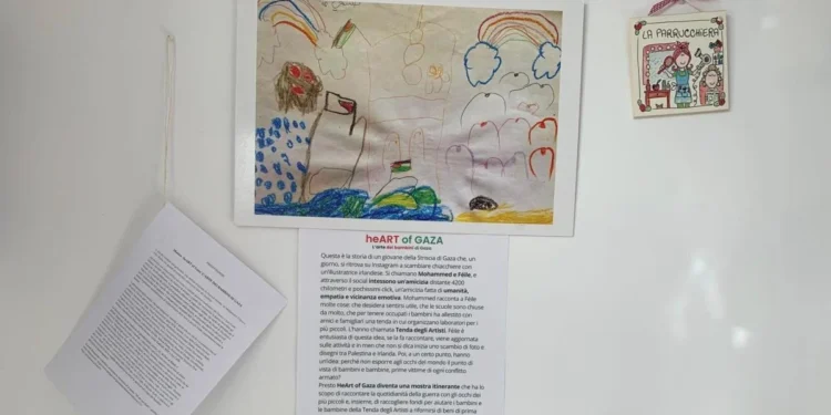 Por Chiara Lombardi — Em um gesto que mistura arte, memória e ativismo, a exposição itinerante HeArt of Gaza desembarca no coração do Cilento, em Capaccio Paestum. A mostra ficará aberta ao público de 23 a 30 de janeiro na Biblioteca Comunale Erica (Piazza Carlo Santini), com inauguração marcada para hoje, 23 de janeiro, às 17h. As visitas serão possíveis todos os dias, das 9h às 19h.