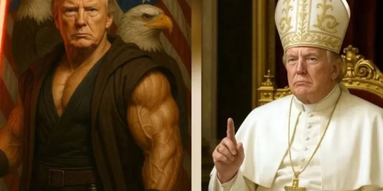 Por Stella Ferrari — A recente enxurrada de imagens de Trump — do “Rei” ao “Papa”, do guerreiro Jedi ao passeio com um pinguim na Groenlândia — não é apenas sátira: representa uma estratégia calculada de saturação informativa. Publicadas ou amplificadas por canais ligados à Casa Branca, essas imagens ilustram um fenômeno que os estudiosos já batizaram de slopaganda: propaganda construída sobre o slop gerado por IA, ou seja, um fluxo massivo de conteúdo descartável, barato e replicável projetado para dominar feeds e moldar percepções.