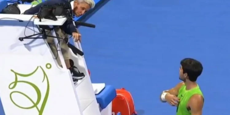 O episódio aconteceu quando o árbitro assinalou a violação de tempo enquanto Alcaraz se dirigia ao seu toalha. Segundo o tenista, ele havia interrompido o cronômetro ao alcançar o equipamento: “Você não parou o tempo”, reclamou Alcaraz, aproximando-se do árbitro. “Eu parei o tempo a 25 segundos do início. Depois você pegou a toalha e reiniciou o relógio”.