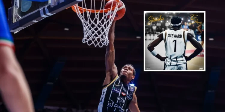 Por Otávio Marchesini — Em um jogo que é ao mesmo tempo espetáculo e construção de identidade, a trajetória de Dj Steward, 24 anos, descreve a mobilidade contemporânea do atleta: da cidade que o formou aos circuitos profissionais europeus, com desvios por música e ambição empreendedora. Uma retrospetiva publicada em MyAquila, seção do site do Aquila Basket, desenha esse mapa íntimo e profissional do exterior americano que agora veste Trento.