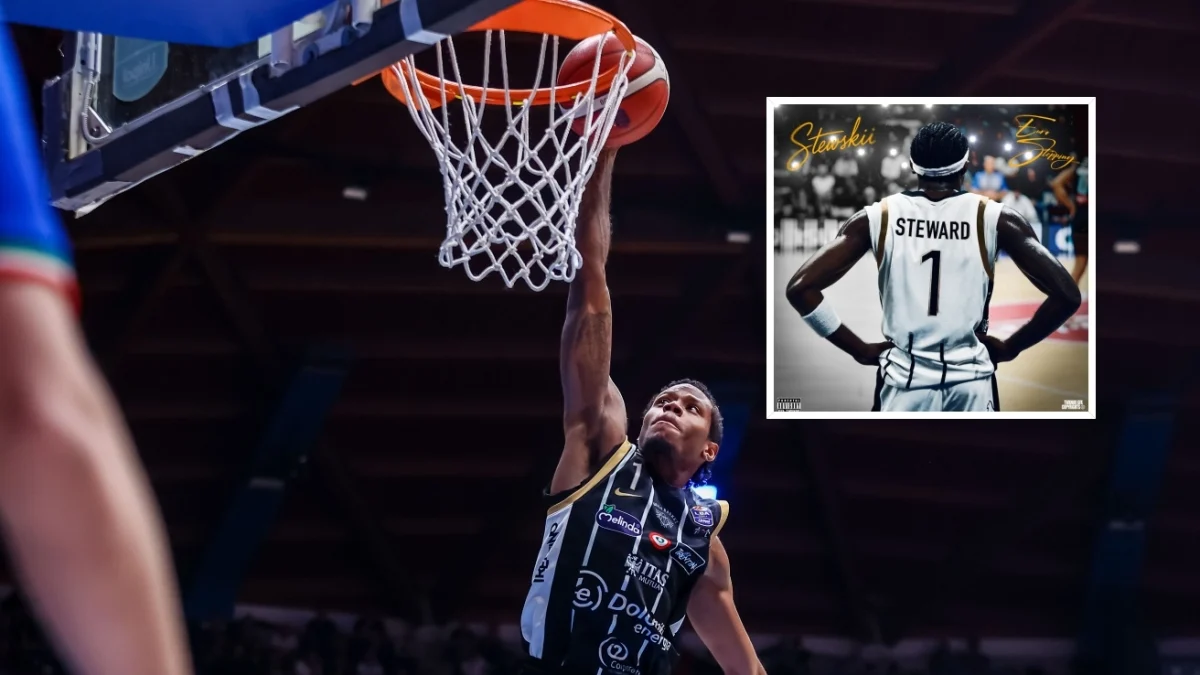 Por Otávio Marchesini — Em um jogo que é ao mesmo tempo espetáculo e construção de identidade, a trajetória de Dj Steward, 24 anos, descreve a mobilidade contemporânea do atleta: da cidade que o formou aos circuitos profissionais europeus, com desvios por música e ambição empreendedora. Uma retrospetiva publicada em MyAquila, seção do site do Aquila Basket, desenha esse mapa íntimo e profissional do exterior americano que agora veste Trento.