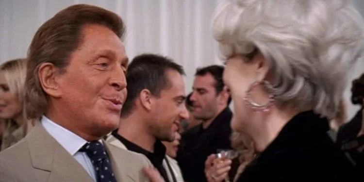 Outra afinidade pública e reiterada é a com Meryl Streep. No filme O Diabo Veste Prada — produção que volta às salas em 2026 com um aguardado sequel — personagens interpretadas por grandes atrizes usam peças de grife, e o próprio Valentino aparece em um cameo, interpretando a si mesmo. A presença da marca no enredo reforça a imagem da alta-costura como personagem simbólico na narrativa sobre moda e poder.