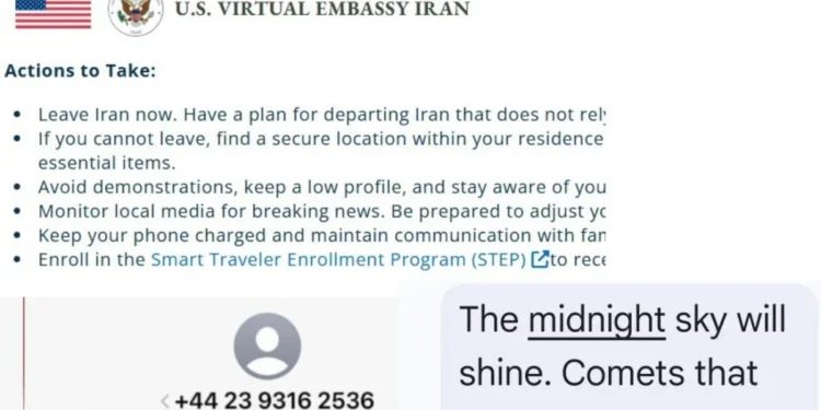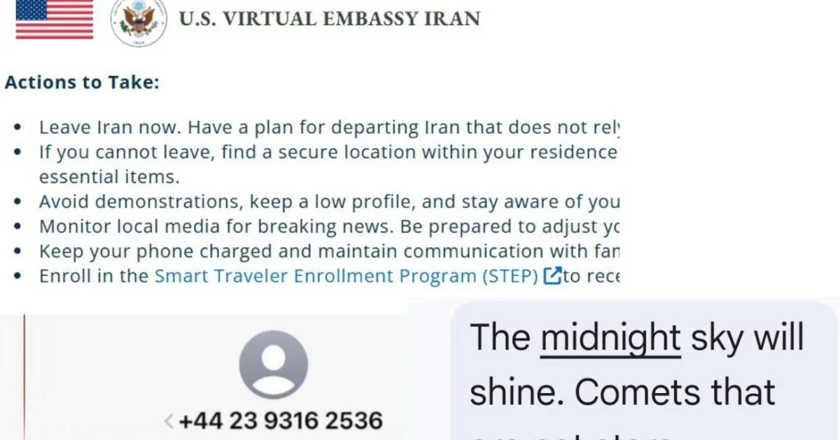 Paralelamente, relatos vindos de Israel registram o recebimento de mensagens SMS ameaçadoras por milhares de celulares, enviadas de números com o indicativo britânico +44. Frases perturbadoras como “olhem para o céu, vai brilhar à meia‑noite” e “estamos chegando” circularam em massa, reacendendo memórias recentes de operações de guerra psicológica que já vinham sendo atribuídas, por algumas fontes, a atores estatais iranianos.