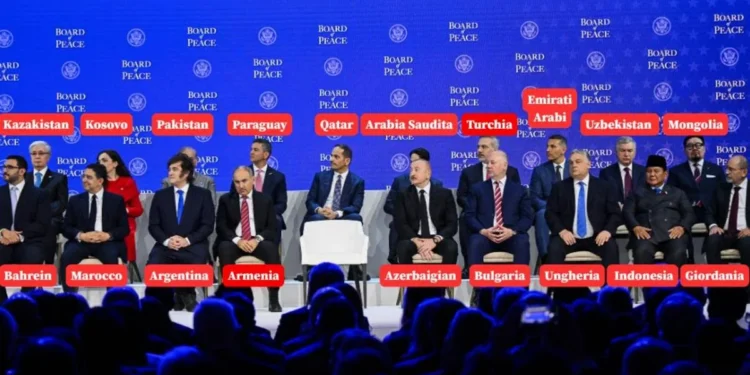 Também houve hesitações de aliados europeus: muitos membros tradicionais da Aliança e da União Europeia evitaram integrar o conselho, citando preocupações políticas sobre convites controversos estendidos por Trump, inclusive ao presidente russo Vladimir Putin e ao seu aliado bielorrusso Aleksandr Lukashenko, ausente em Davos. A Casa Branca divulgou uma lista de países com 22 signatários: Estados Unidos, Bahrein, Marrocos, Argentina, Armênia, Azerbaijão, Bélgica, Bulgária, Egito, Hungria, Indonésia, Jordânia, Cazaquistão, Kosovo, Mongólia, Paquistão, Paraguai, Qatar, Arábia Saudita, Turquia, Emirados Árabes Unidos e Uzbequistão.