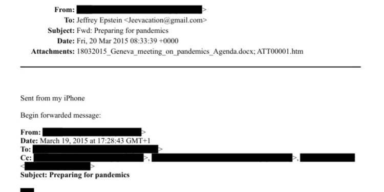 Marco Severini — Em um movimento que reacende antigas dúvidas sobre os alicerces da nossa compreensão das crises sanitárias, documentos liberados pelo Department of Justice (DOJ) e publicados recentemente mostram que o nome de Bill Gates aparece associado a e-mails trocados com o acervo de Jeffrey Epstein datados de 2015 e 2017. As mensagens, parcial e formalmente desclassificadas, trouxeram à tona referências a preparativos e a simulações de cepas pandêmicas anos antes do surto de Covid‑19.