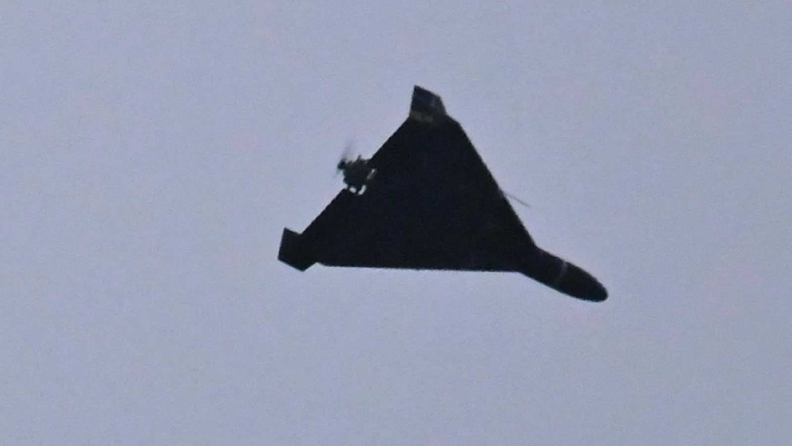 Imagem para edição: foto de um drone Shahed em voo ao entardecer, com contornos claros do horizonte ucraniano ao fundo; em outra opção, imagem de Mark Rutte em coletiva de imprensa, gesticulando enquanto fala.