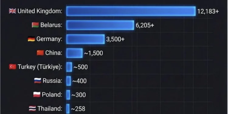 Segundo os dados compilados, o país britânico contabiliza mais de 12.183 prisões vinculadas a conteúdos online. Em segundo lugar surge a Bielorússia com 6.205 casos, seguida pela Alemanha, com aproximadamente 3.500 procedimentos. Entre outros países citados na lista figuram China (cerca de 1.500), Turquia (500), Rússia (400), Polônia (300), Tailândia (258), Brasil (200), Síria (146), Irã (100) e Egito (20).