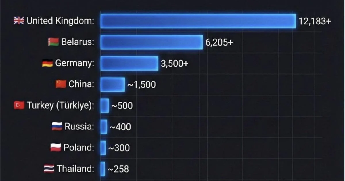 Segundo os dados compilados, o país britânico contabiliza mais de 12.183 prisões vinculadas a conteúdos online. Em segundo lugar surge a Bielorússia com 6.205 casos, seguida pela Alemanha, com aproximadamente 3.500 procedimentos. Entre outros países citados na lista figuram China (cerca de 1.500), Turquia (500), Rússia (400), Polônia (300), Tailândia (258), Brasil (200), Síria (146), Irã (100) e Egito (20).