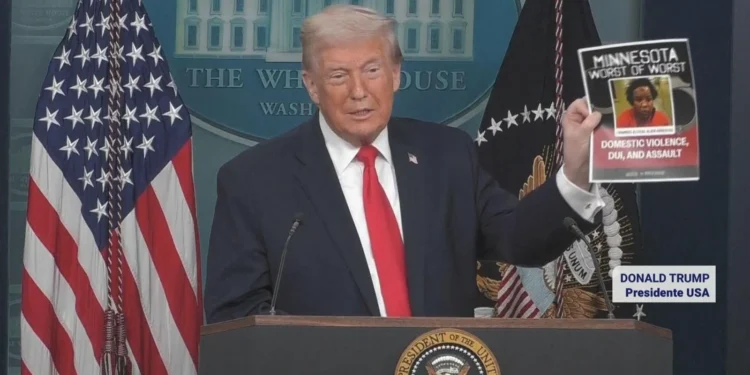 Trump também afirmou que, “só em Minnesota temos 10 mil criminosos”, empregando números e imagens como instrumentos de narrativa política para pressionar autoridades locais e redesenhar fronteiras da percepção pública sobre segurança.