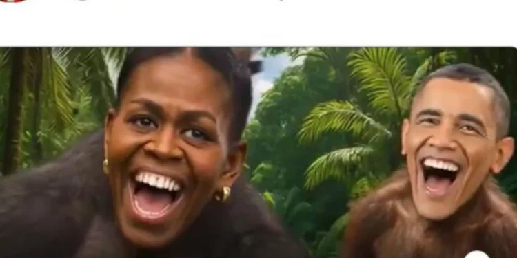 Por Marco Severini — Em mais um movimento que redesenha linhas de confronto no tabuleiro político americano, Donald Trump publicou um vídeo na plataforma Truth que tem gerado forte repúdio. O material, com cerca de um minuto, reúne alegações infundadas sobre supostas irregularidades na contagem de votos atribuídas à empresa Dominion Voting Systems e inclui, por alguns segundos, um fotomontagem em que os rostos de Barack Obama e Michelle Obama são colocados sobre corpos de macacos, ao som de ‘In the Jungle’.