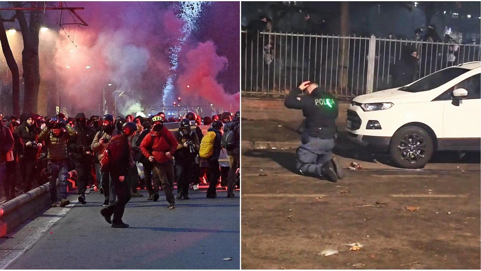 O documento que comunicou a data da audiência foi assinado em 2 de fevereiro — dois dias após os confrontos que marcaram a manifestação Pro Askatasuna no centro piemontês. Aquela noite teve a dimensão de uma guerrilha urbana: homens encapuzados, com roupas escuras, capacetes e passam-montanhas atacaram repetidas vezes os contingentes das forças da ordem, lançando pedras, garrafas de vidro, rojões e bombas de efeito sonoro; ergueram barricadas com contentores incendiados e chegaram a atear fogo a uma caminhoneta da polícia.