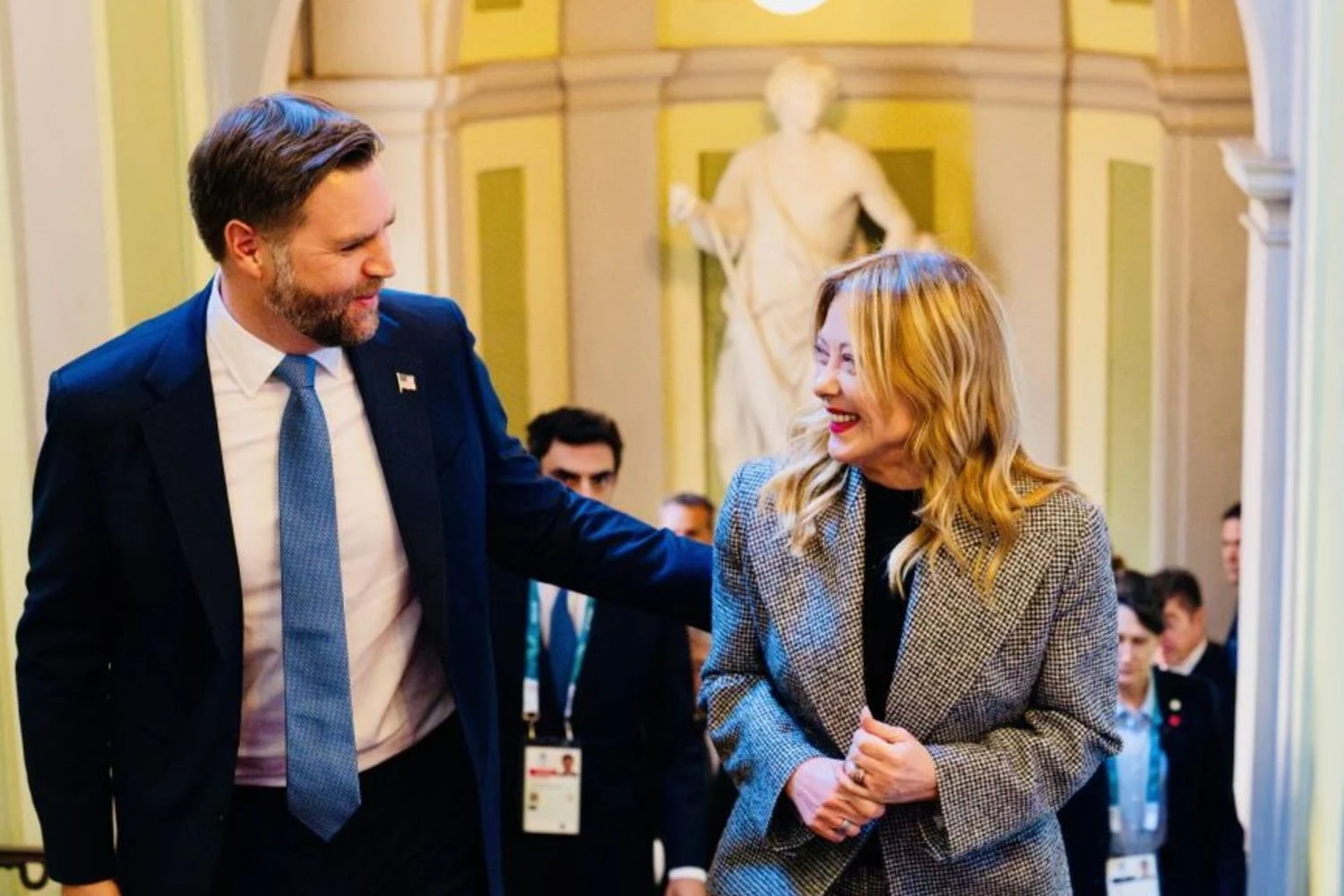 Por sua vez, o vice-presidente Vance ressaltou o apreço pelos laços com a Itália: “É bom estar de novo neste belíssimo país. Amamos a Itália e os italianos. Vocês fizeram um trabalho extraordinário para os Jogos”. Vance também ressaltou que, no espírito olímpico, a competição se baseia em regras e valores partilhados, e que haverá diálogo sobre vários temas bilaterais e multilaterais.