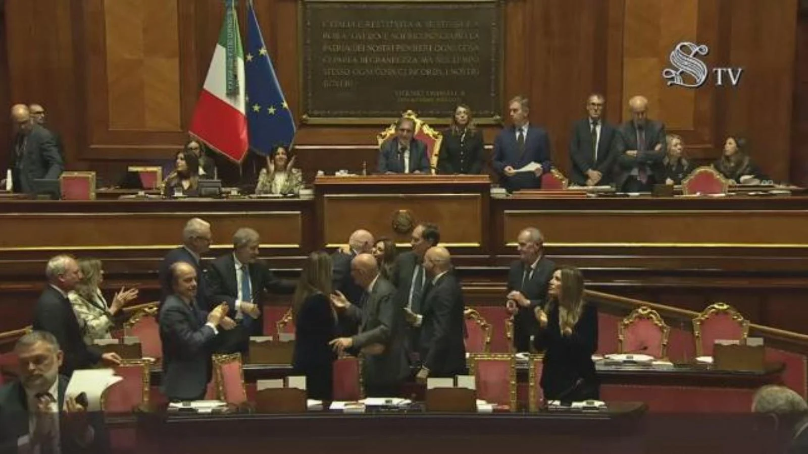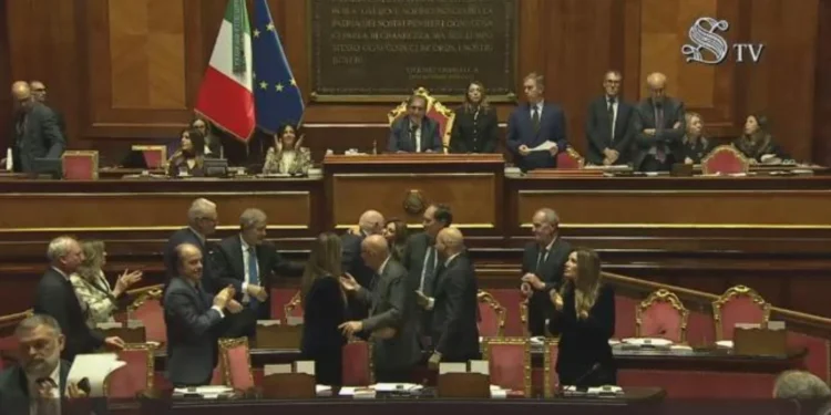 A sessão ficou tensa: senadores do PD, do M5S e da AVS protestaram exibindo cartazes com a frase “No ai pieni poteri” (“Não aos poderes plenos”), enquanto o centro-direita respondeu com aplausos logo após a confirmação do texto. Durante os debates, a tribuna se inflamou especialmente durante o discurso de Roberto Scarp, numa sequência de intervenções que deixou claro o peso simbólico da votação.