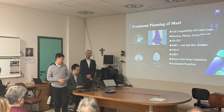 Nos dias 22 e 23 de janeiro, o Responsible Research Hospital de Campobasso recebeu um workshop técnico-científico que marca um novo capítulo na oncologia italiana. A equipe local reuniu-se com físicos do grupo internacional chinês da empresa americana Manteia para trabalhar na implementação clínica da plataforma Mozi, um sistema de planejamento radioterápico apoiado por inteligência artificial projetado para tornar a radioterapia adaptativa (ART) aplicável na rotina diária.