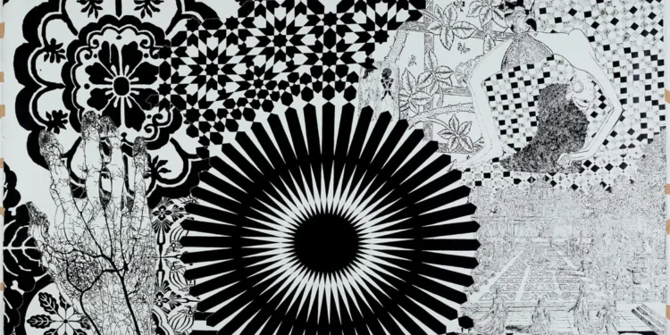 Também em Roma, na Galleria Nazionale d’Arte Moderna e Contemporanea, está em cartaz a individual de Maurizio Cannavacciuolo, intitulada “Promenade“, curada por Marco Tonelli com Angelo Bucarelli, em exibição de 19 de janeiro a 1º de março. A instalação reúne quatro grandes óleos em preto e branco, diante dos quais se dispõem quatro vasos em cerâmica pintada — obras que estabelecem um diálogo entre pintura e objeto, silêncio e presença. É um convite ao passeio interior, um caminho onde a vista encontra o tato imaginado.