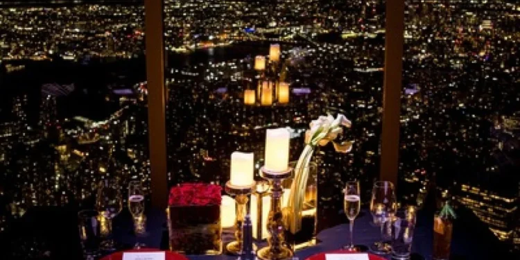 Imagine a luz dourada da cidade aos seus pés, o perfume do espumante borbulhando na taça e um menu de três tempos servido com cuidado enquanto uma trilha sonora suave embala a noite. Os dois apaixonados terão o edifício inteiro só para eles — o deck estará fechado ao público — e ainda ganharão uma visita privada, transformando o momento em um pequeno universo à parte, um verdadeiro Dolce Far Niente no topo de Manhattan.