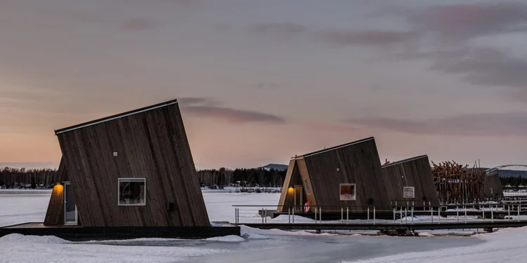 Na Suécia, o Arctic Bath Hotel ergue‑se como uma joia arquitetônica: um anel flutuante ancorado no rio Lule, lembrando um ninho pousado nas águas. Aqui, os hóspedes alternam entre saunas, mergulhos gélidos no rio e tratamentos que celebram a cultura do banho nórdico — tudo envolto por uma paisagem que parece pintada em aquarela de inverno.