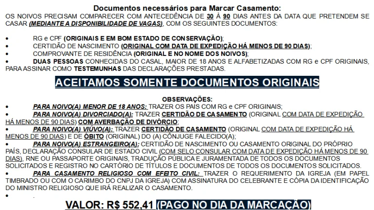 - Requisitos adicionais: Dependendo do Comune onde você está registrando o casamento, podem ser solicitados documentos adicionais. Esses requisitos podem variar de acordo com o local e a situação específica do casal. É importante entrar em contato com o Comune com antecedência para saber quais são esses requisitos adicionais.