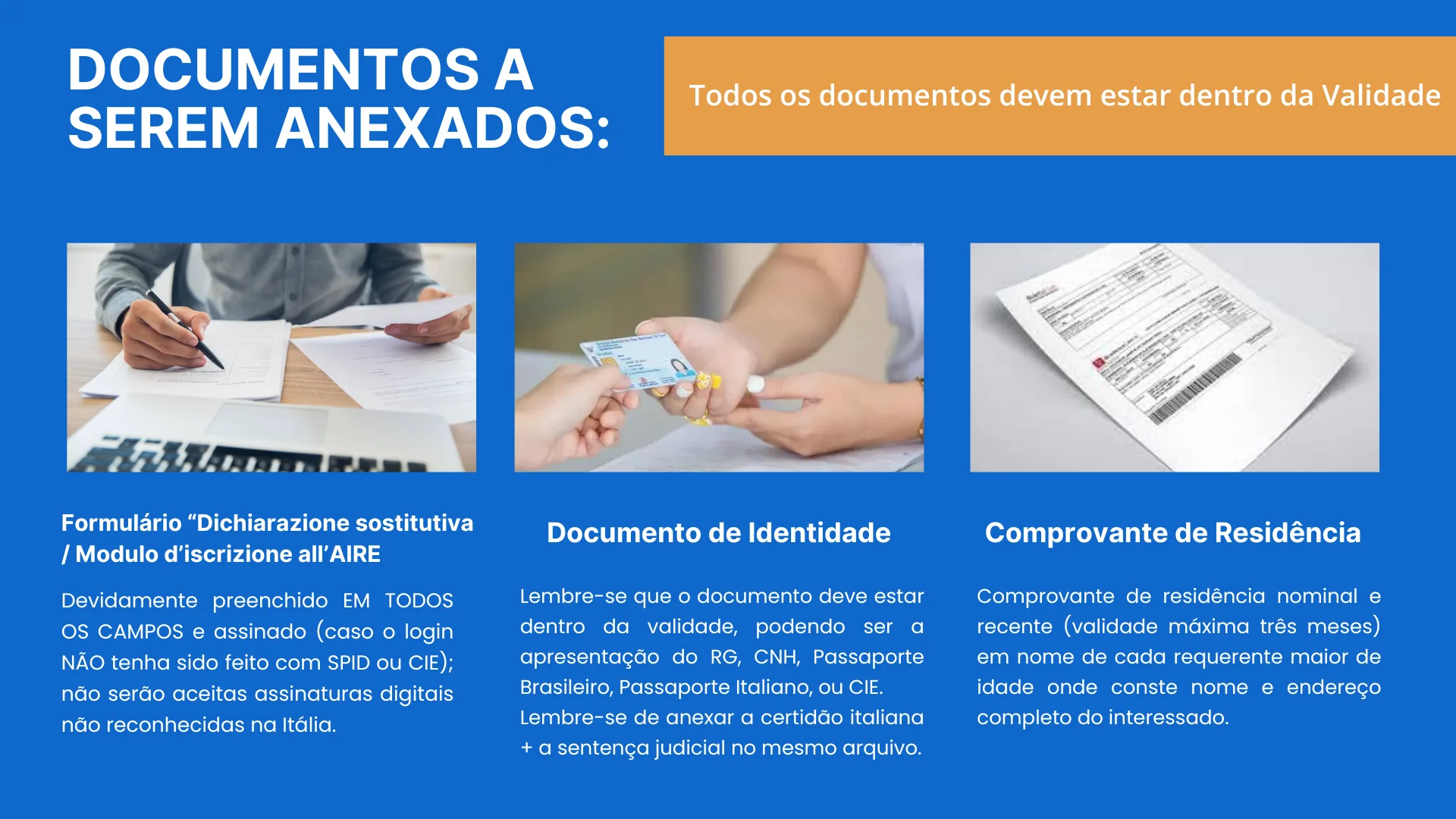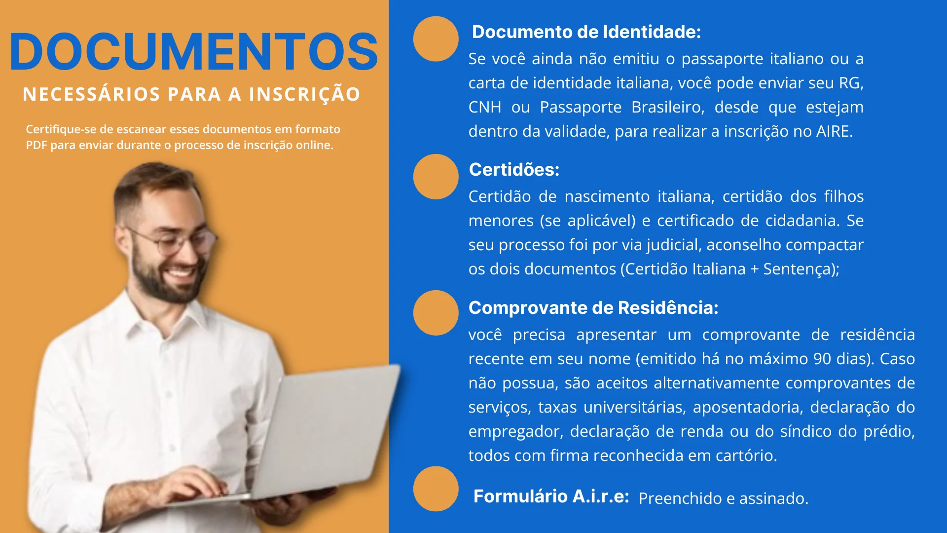 - O registro facilita o acesso dos cidadãos italianos a serviços consulares, como emissão e renovação de documentos como passaporte e identidade, assistência em caso de emergências e outras necessidades administrativas. Saiba como agendar seu passaporte italiano ainda no Brasil ou no Exterior.