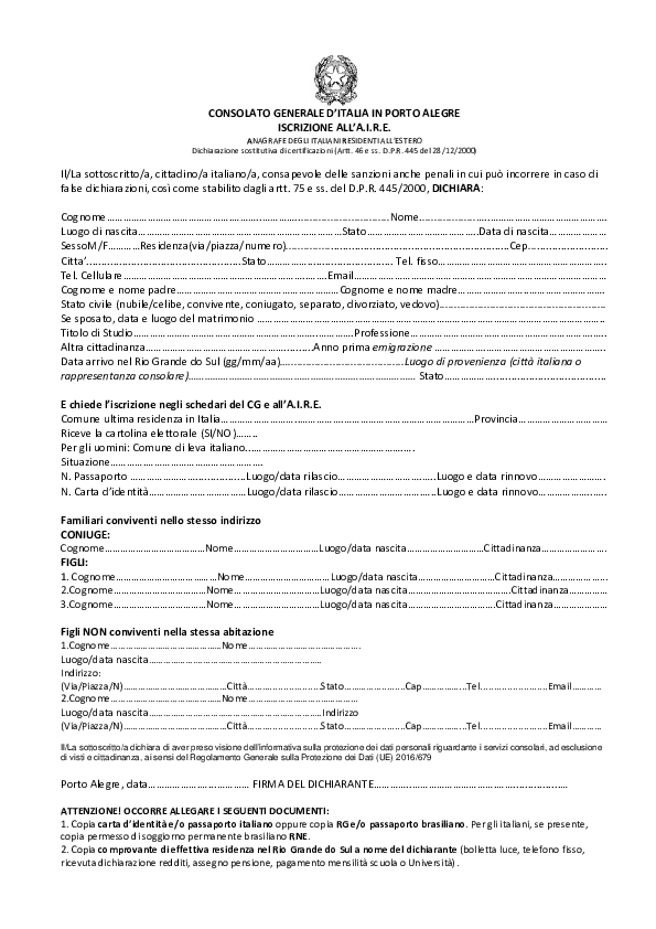 - Descrição: Se você residiu na Itália anteriormente, o município de referência para a sua inscrição AIRE será o último Comune onde você teve sua residência.