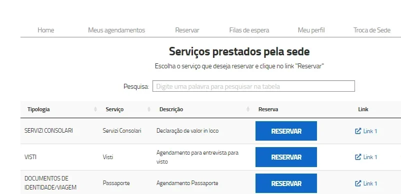 Na opção de Documento de Identidade/Viagem - Passaporte Clique em “Reservar”