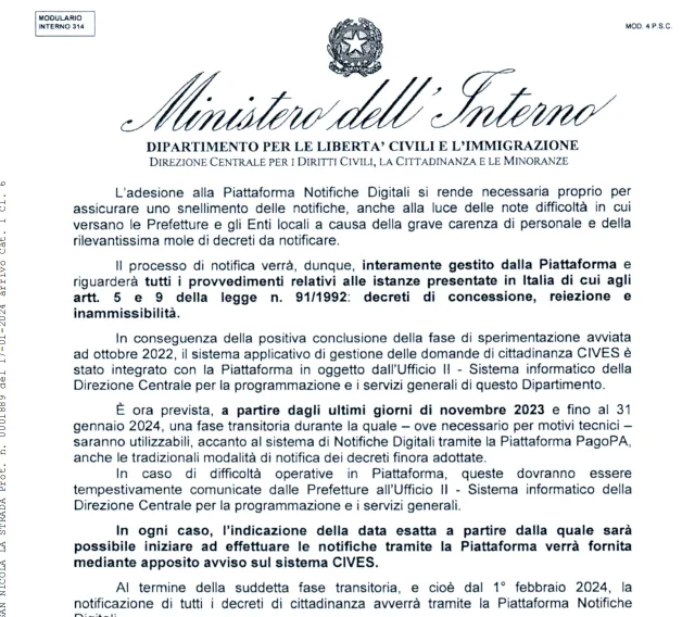 Conheça as inovações implementadas pelo Ministério do Interior italiano para simplificar o processo de notificação de decretos de cidadania.