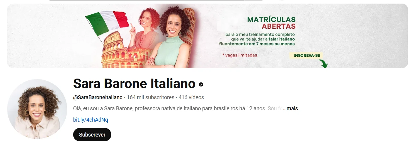 O canal Sara Barone Italiano é comandado por Sara Barone, uma professora nativa de italiano, que mora no Brasil. Ela ensina italiano de forma didática e acessível, com foco na pronúncia, vocabulário e expressões cotidianas. Sara também compartilha dicas sobre a cultura italiana, o que torna o aprendizado ainda mais imersivo.