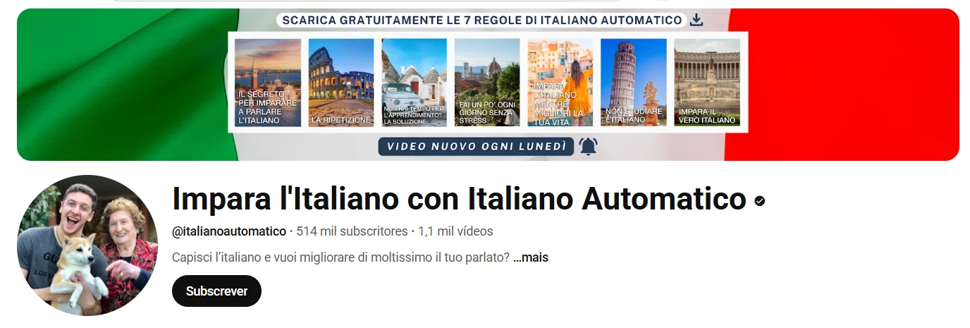 Este canal é excelente para quem já possui uma noção básica de italiano e quer melhorar a fluência. O Italiano Automatico é focado no ensino do idioma de maneira natural, como se fosse a sua língua materna, utilizando conteúdos autênticos como conversas reais, podcasts e diálogos. O objetivo do canal é ajudar os alunos a adquirir a língua de forma intuitiva, o que é essencial para uma aprendizagem duradoura.