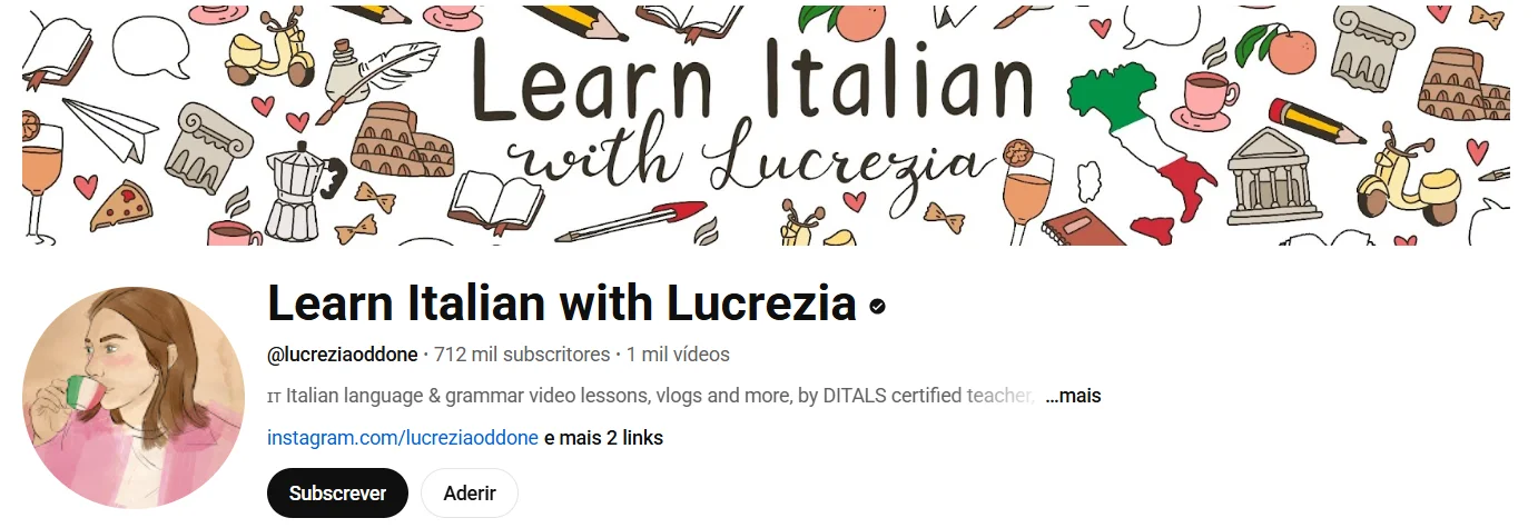 Lucrezia é uma professora italiana super carismática e oferece vídeos para iniciantes até níveis avançados. A principal vantagem desse canal é a forma como ela explica as regras gramaticais de maneira simples e clara, sem sobrecarregar o espectador. Além disso, os vídeos são bem dinâmicos e incluem dicas culturais, o que ajuda a entender a língua no contexto real.