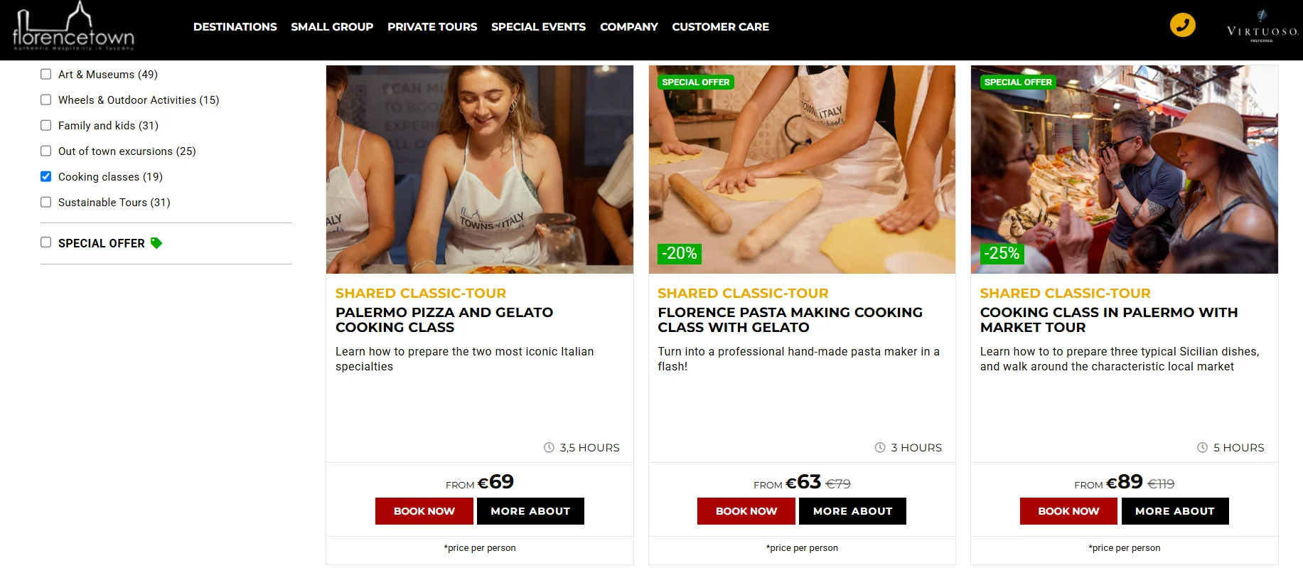 Site: Fabiolous Cooking Day no “That’s Amore Restaurant” — inclui aula prática de massa, pizza, pasta, sobremesa e bebidas.