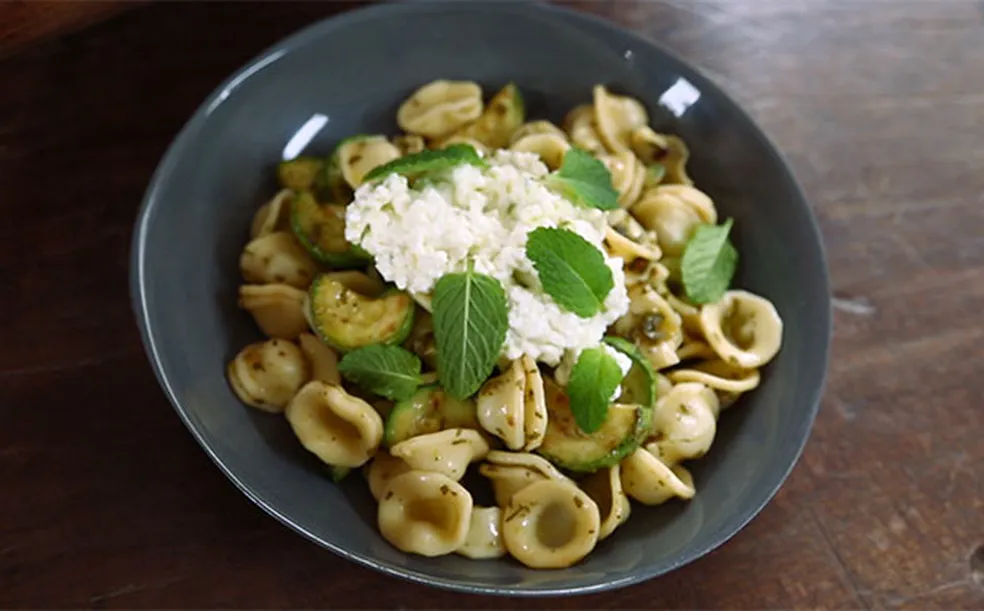 Macarrão com Creme de Abobrinha e Burrata