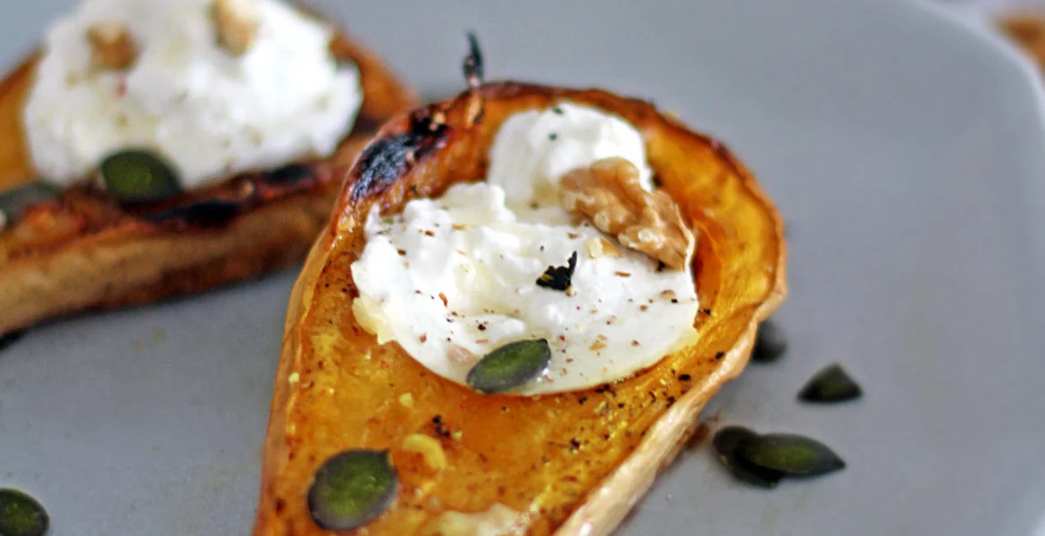 Millefeuille de Abóbora Grelhada com Burrata e Avelãs