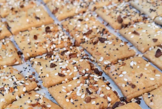 Misture tudo até obter uma massa firme e maleável. Abra a massa com um rolo em superfície enfarinhada até ficar bem fina. Corte em quadradinhos, coloque em forma untada ou com papel manteiga. Asse em forno pré-aquecido a 180°C por 15–20 minutos, até dourar e ficar crocante.3. Bolo de Banana com Levain